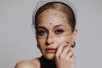 Для съёмки она выбрала полупрозрачное платье, подчёркивающее её силуэт, дополнив образ вуалью и крупными эффектными украшениями, которые добавили изюминки снимку.